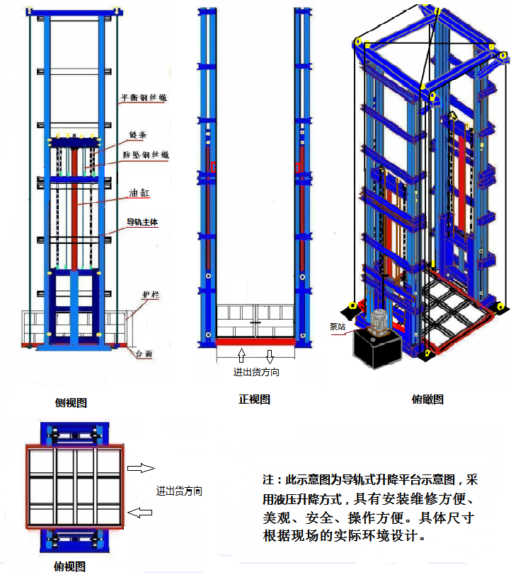 室外升降機(導(dǎo)軌式升降機)也稱導(dǎo)軌式升降平臺,屬于固定式升降平臺可根據(jù)現(xiàn)場環(huán)境定做使用;層門可貫通,廠房內(nèi)外可相互戳開,方便、節(jié)省空間;特別適合2-3層鋼結(jié)構(gòu)廠房,內(nèi)外部均可使用.一般載重噸位0.5-5噸,升降高度1-15米。可以根據(jù)客戶要求設(shè)計定做定做。